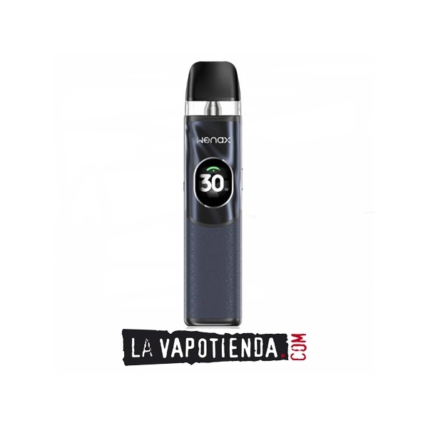 El dispositivo Wenax Q2 de Geekvape es una versión más potente respecto al modelo anterior. Mezcla materiales de alta calidad que combinan a la perfección: metal y piel. Cuenta con una pantalla con 4 estilos distintos, una batería interna de 1250mAh, 30W de potencia y un botón lateral con el que puedes configurarlo según tus preferencias.